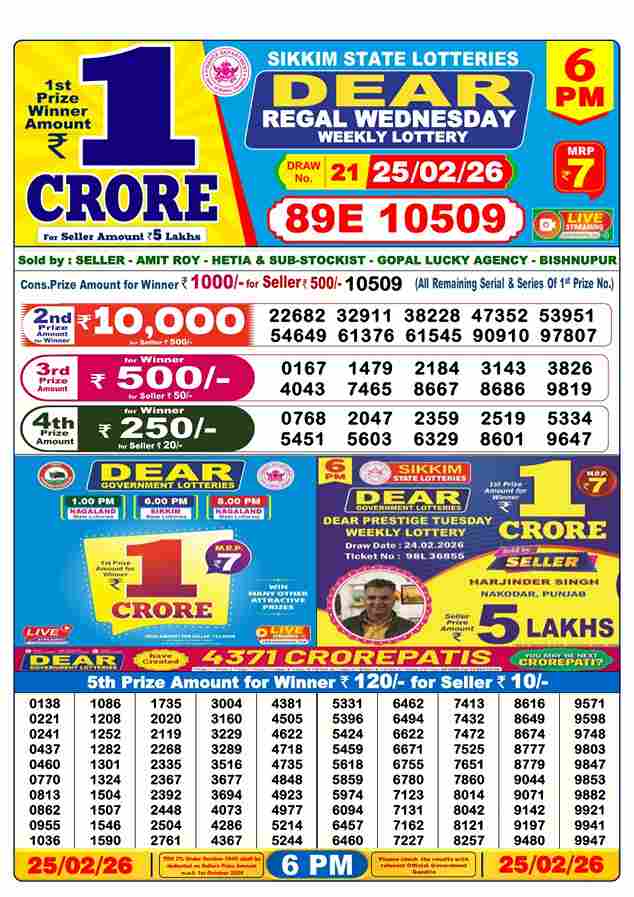 Today’s Nagaland State Lottery Result February 26, 2026 for Dear Morning, Dear Day & Dear Night
