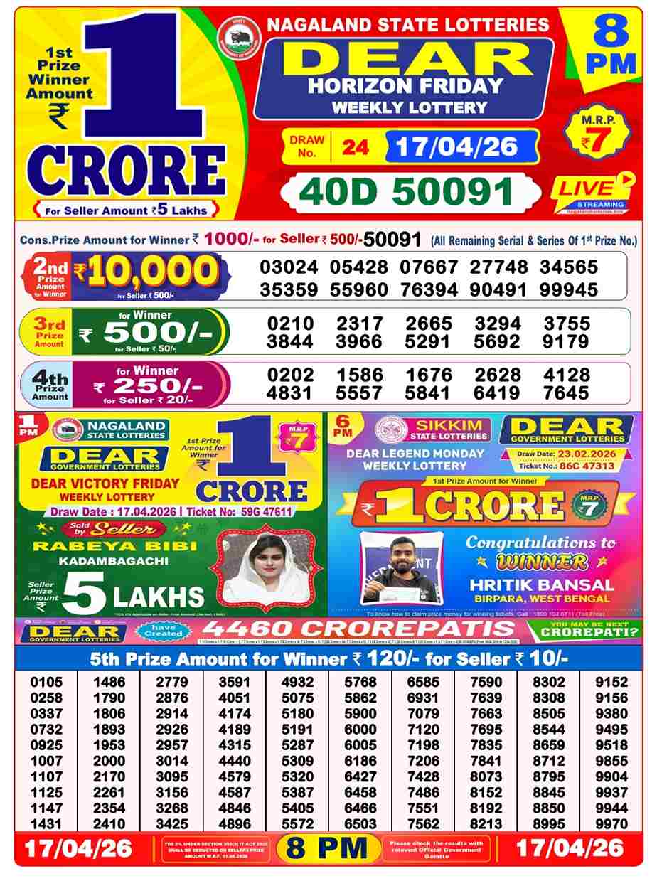 Nagaland State Lottery 8PM Result – April 18, 2026